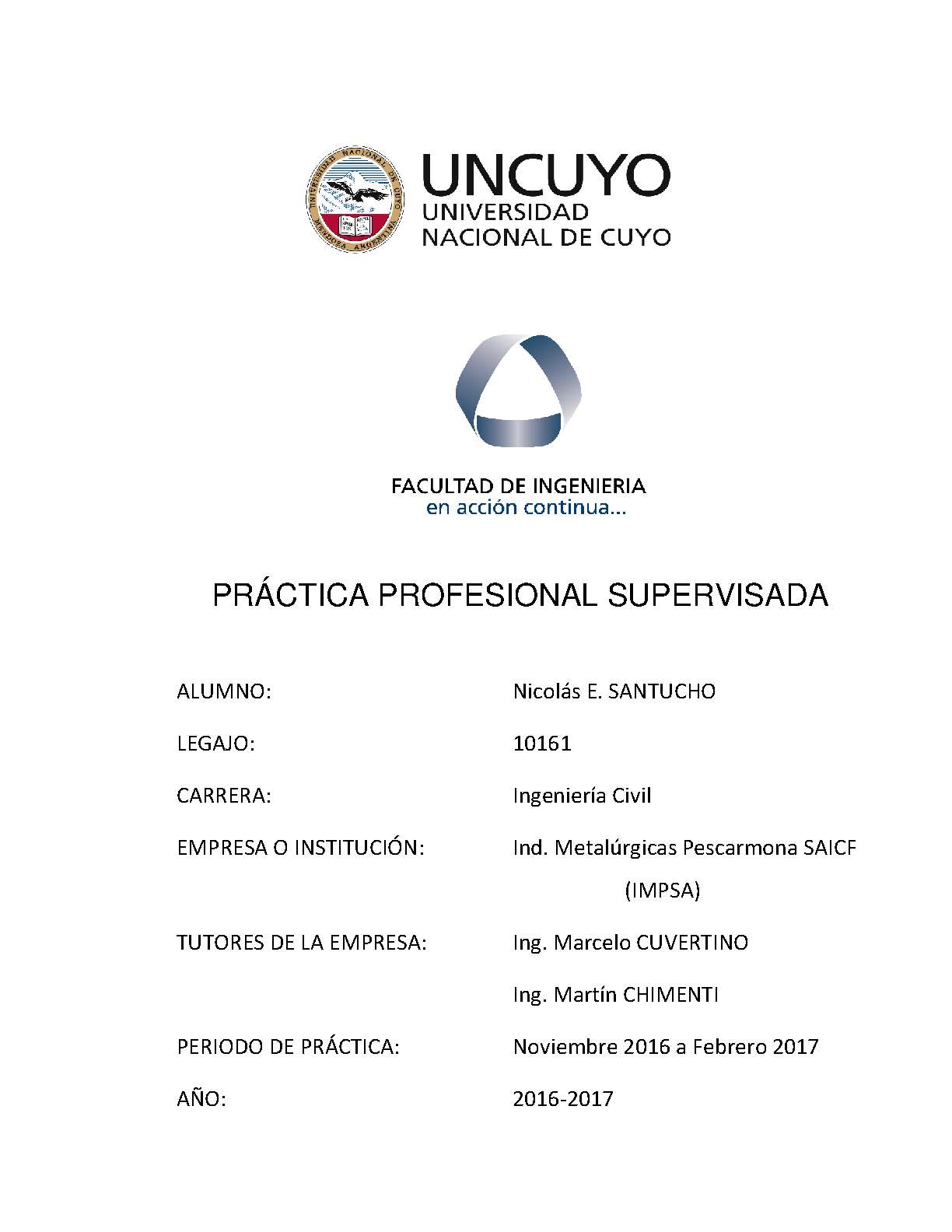 Santucho, Nicolás E.. (2017). Industrias Metalúrgicas Pescarmona SAICF (IMPSA): (Práctica Profesional Supervisada). Mendoza, Universidad Nacional de Cuyo. Facultad de Ingeniería .