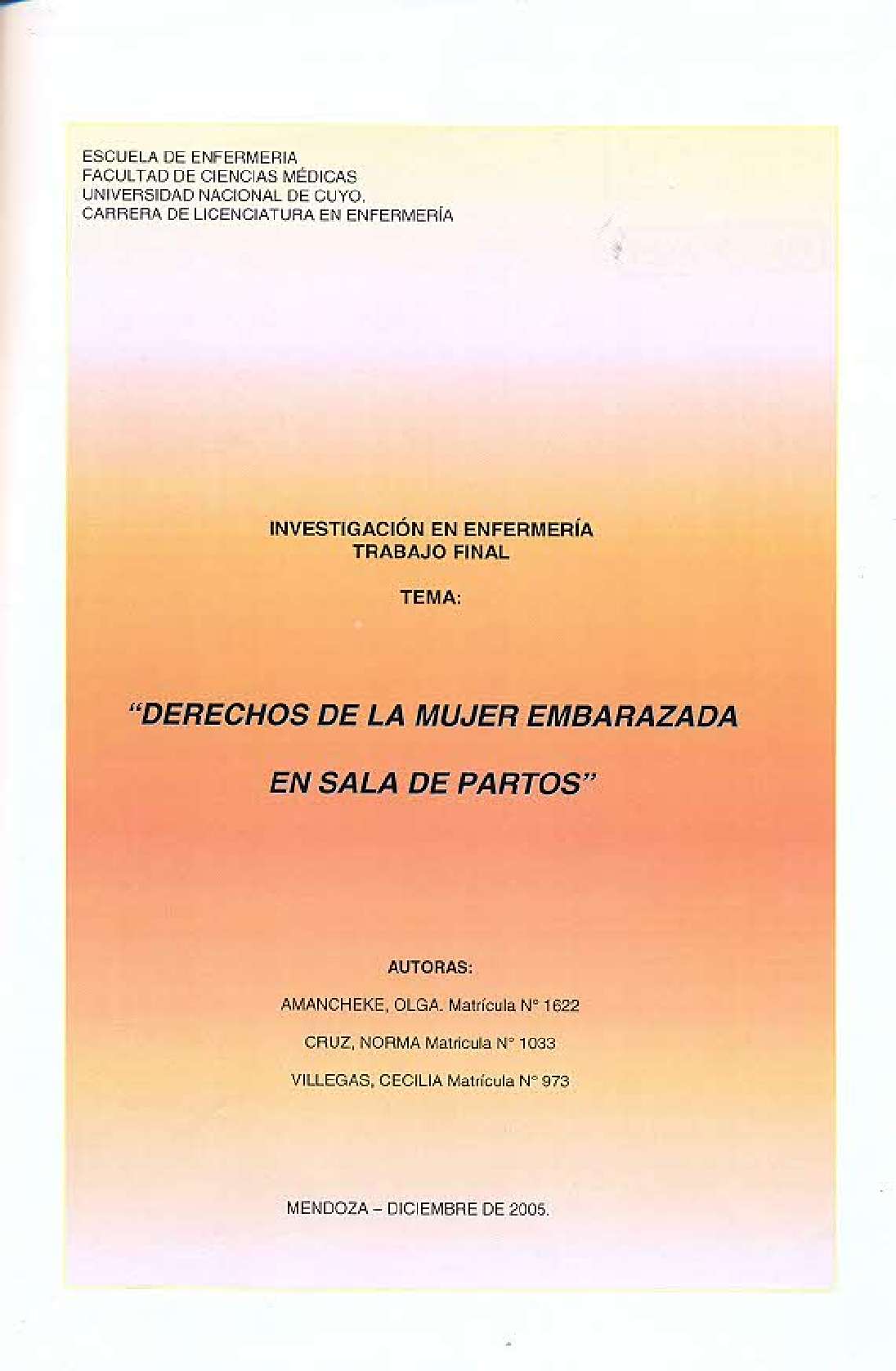 Universidad Nacional de Cuyo. Facultad de Ciencias Médicas. Escuela de Enfermería.