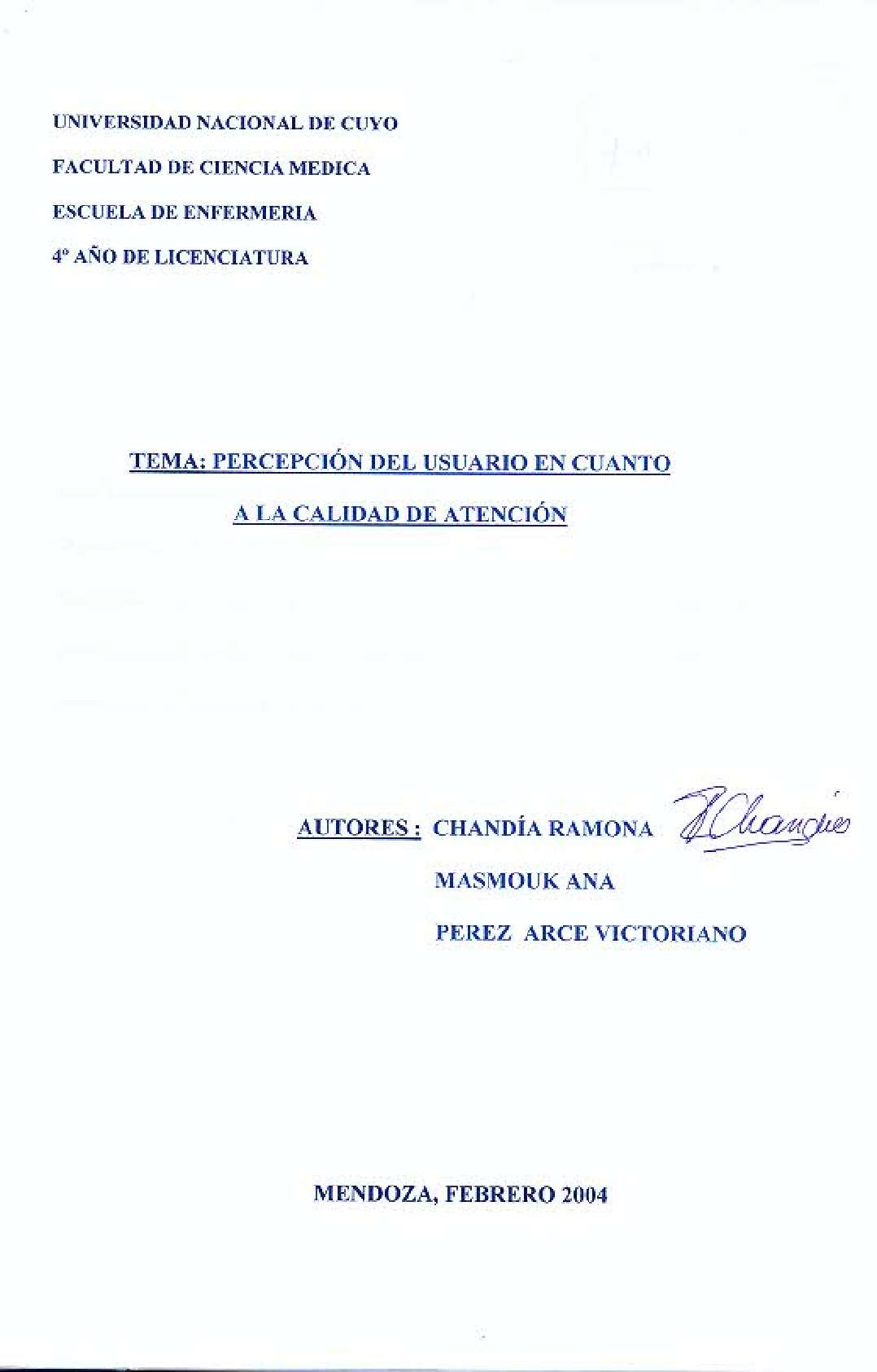 La hospitalización de un niño es generalmente una situación que produce estrés en la familia, en mayor medida cuando la internación es en un servicio de terapia intensiva. Contemplar procedimientos que varían desde la aspiración en un paciente dependiente de ventilador hasta la administración de medidas de reanimación pueden ser situaciones desoladoras para los padres ya asustados. Puede haber una mala interpretación de bromas o risas del equipo de salud, ya que los padres ven a esa situación como una acción de indiferencia insensible, cuando en realidad de hecho significa la liberación de tensiones, que es necesaria para el desarrollo del trabajo en un ambiente estresante. En este ambiente, los esfuerzos de enfermería no alcanzan para contener la ansiedad de los padres. El estrés de los padres ante la internación de sus hijos se manifiesta de diversas formas, en más de una oportunidad la agresión está presente. La correcta comunicación personal-familia hará que muchos de los inconvenientes y situaciones estresantes sean resueltos antes que surjan, ya sea en el trato interpersonal como en la aplicación del tratamiento del niño. Este trabajo de investigación tiene como objetivo determinar cuál es la percepción del usuario en cuanto a la calidad de la atención prestada por el servicio de terapia intensiva pediátrica del Hospital Humberto Notti en los meses de junio-julio de 2001; y conocer el grado de satisfacción por parte de los padres en cuanto a las actuaciones del personal.