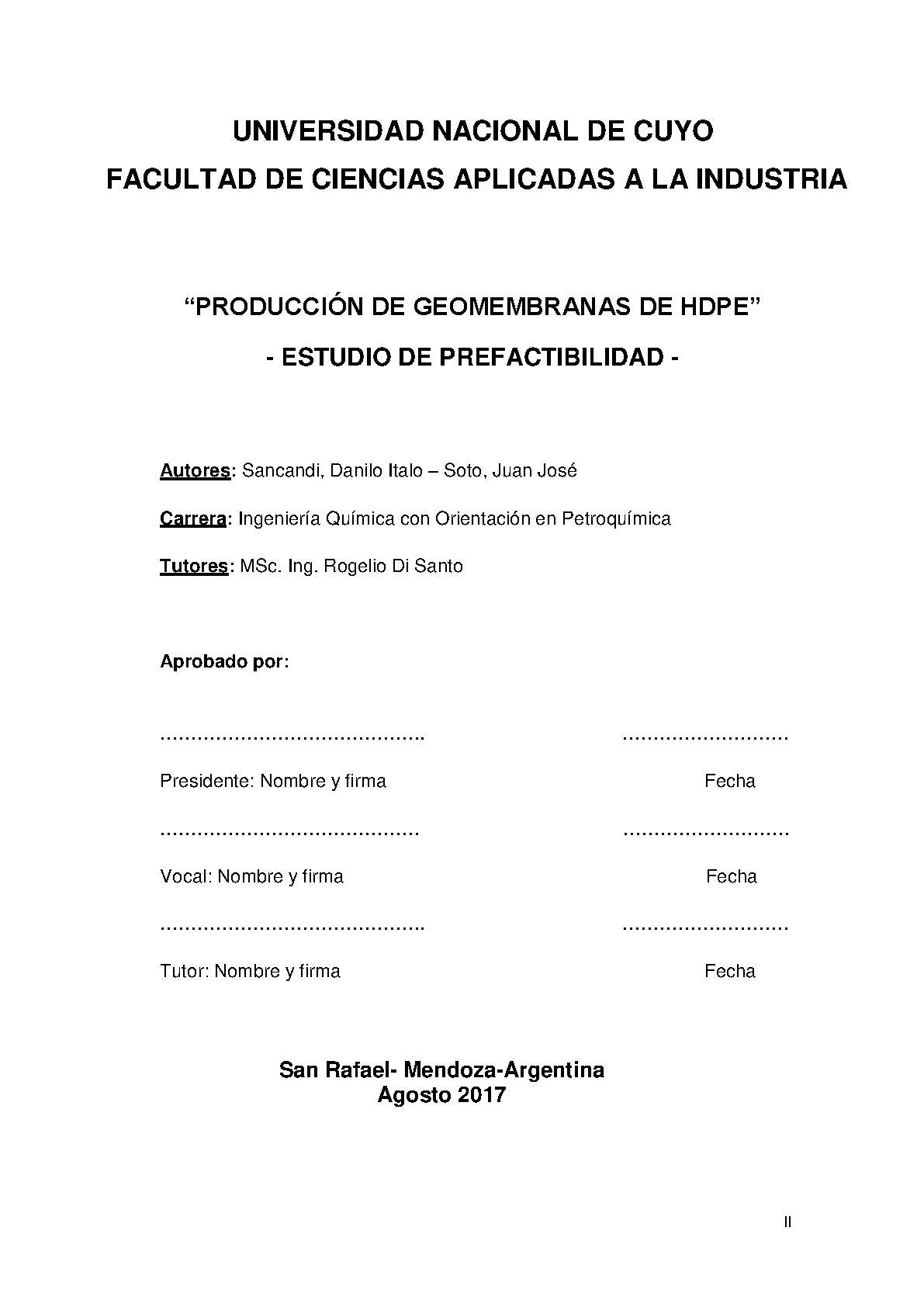 instalación y puesta en marcha de una fábrica de producción de geomembranas de HDPE mediante la técnica de extrusión y conformado por burbuja; identificar y justificar la necesidad del uso de las geomembranas de HDPE en función de la variedad de aplicaciones que poseen; determinar la probable demanda futura de las geomembranas de HDPE en Argentina; analizar la oferta de las materias primas en el país y en el exterior, de manera de determinar la viabilidad de obtenerlas en el mercado interno o acudir a su importación; analizar y precisar la localización más conveniente para la instalación de la planta de producción; seleccionar la tecnología más conveniente en función de la capacidad de producción, costos de adquisición y características del producto a obtener; analizar costos de inversión, operación y fabricación de Geomembranas