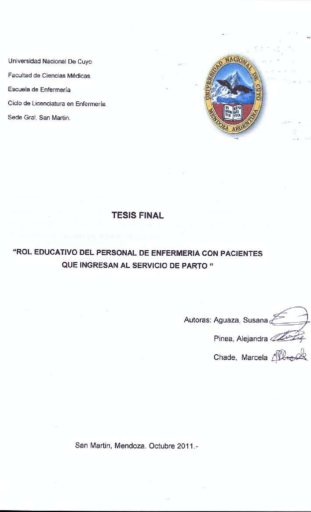 Universidad Nacional de Cuyo. Facultad de Ciencias Médicas. Escuela de Enfermería.