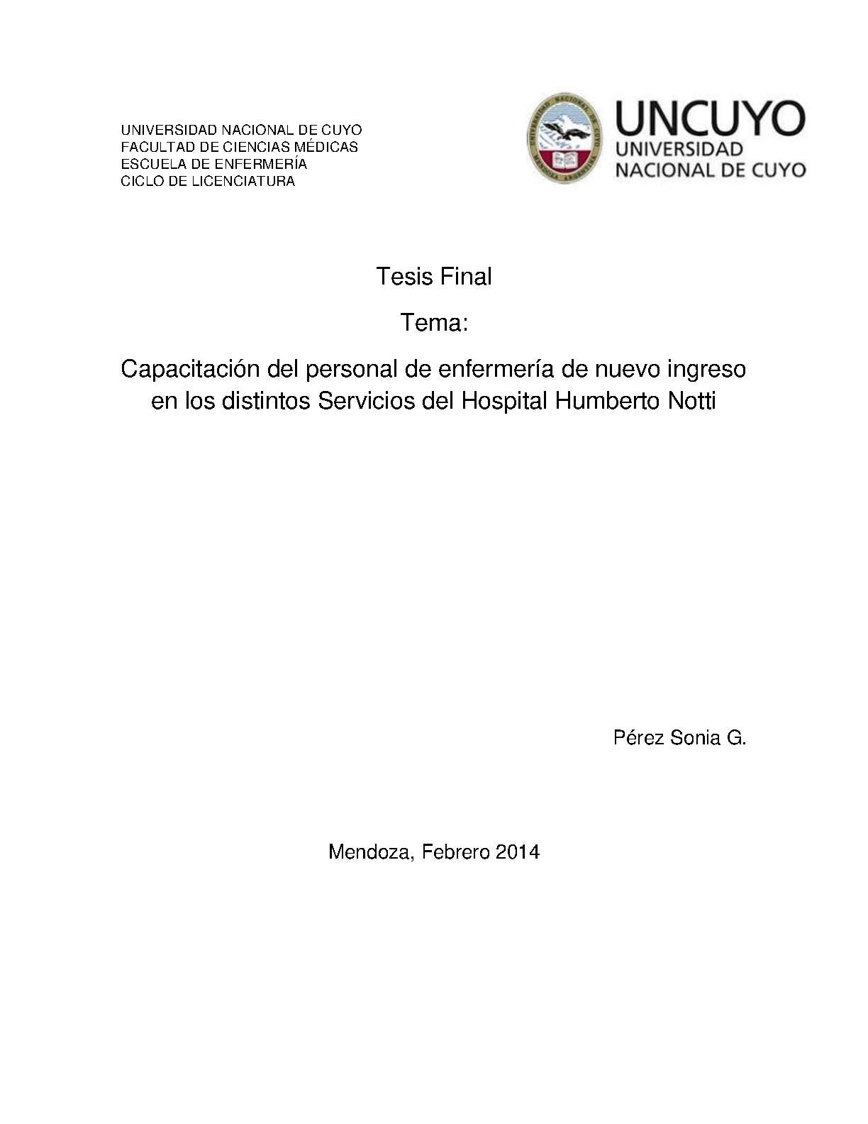 La capacitación laboral es uno de los temas más importantes en los ámbitos laborales. Dicha capacitación se ha generado tanto a partir de la iniciativa de las empresas, como por medio del Estado. En ambos casos se apunta hacia la calidad y por ende a la rentabilidad. Estos enfoques, que apuntan al capital humano, plantean que la formación e inversión en los recursos humanos es una de las estrategias más relevantes. Es decir se ve a la capacitación como principal e indispensable elemento con el que cuenta cada trabajador; en nuestro caso los enfermeros, para llegara a ser competitivos y exitosos en sus ámbitos de trabajo. Sin embargo también hay otros puntos de vista donde la capacitación no debe tomarse solamente como una forma de realizarse profesionalmente, sino como una forma de inclusión e inserción y por supuesto de progreso económico. Desde el comienzo del funcionamiento del hospital Pediátrico Humberto Notti, en Mendoza, Argentina, el servicio de supervisión de enfermería, se hizo cargo de contratar y seleccionar al personal de enfermería; así como también de su capacitación constante y de su evaluación permanente. Este trabajo de investigación tiene como objetivo conocer las expectativas de capacitación que tienen los enfermeros de nuevo ingreso en el Hospital Notti y las ofertas educativas que ofrece el mismo, tanto dentro como fuera de la institución, en agosto de 2013.