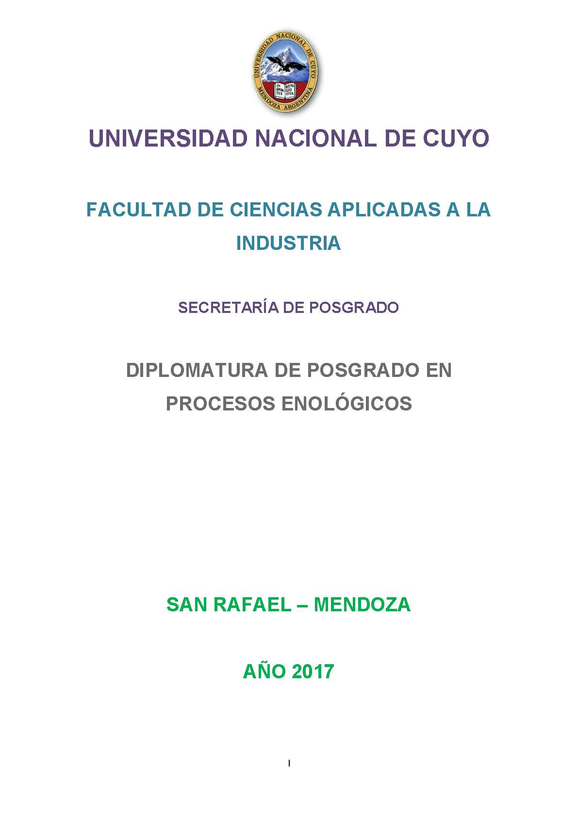 Título al que opta: Diplomado de Posgrado en Procesos Enológicos