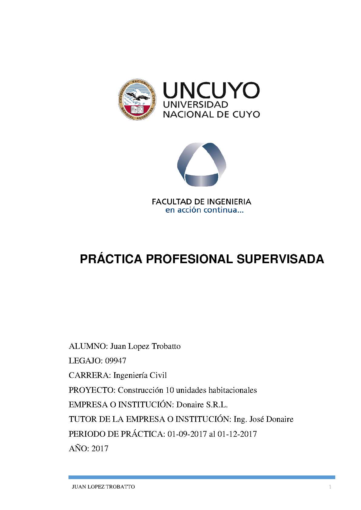 En el presente trabajo, se detallan las tareas asignadas durante el periodo de la Práctica Profesional Supervisada, realizadas en la Empresa Constructora Donaire S.R.L. dedicada a la conducción de obras civiles.
