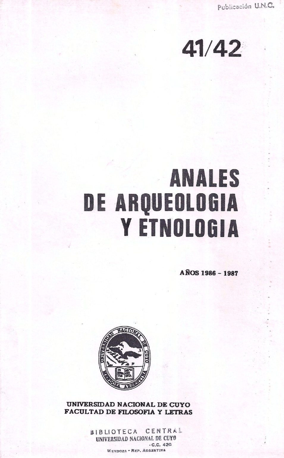 Institución Editora: Universidad Nacional de Cuyo. Facultad de Filosofía y Letras. Instituto de Arqueología y Etnología
