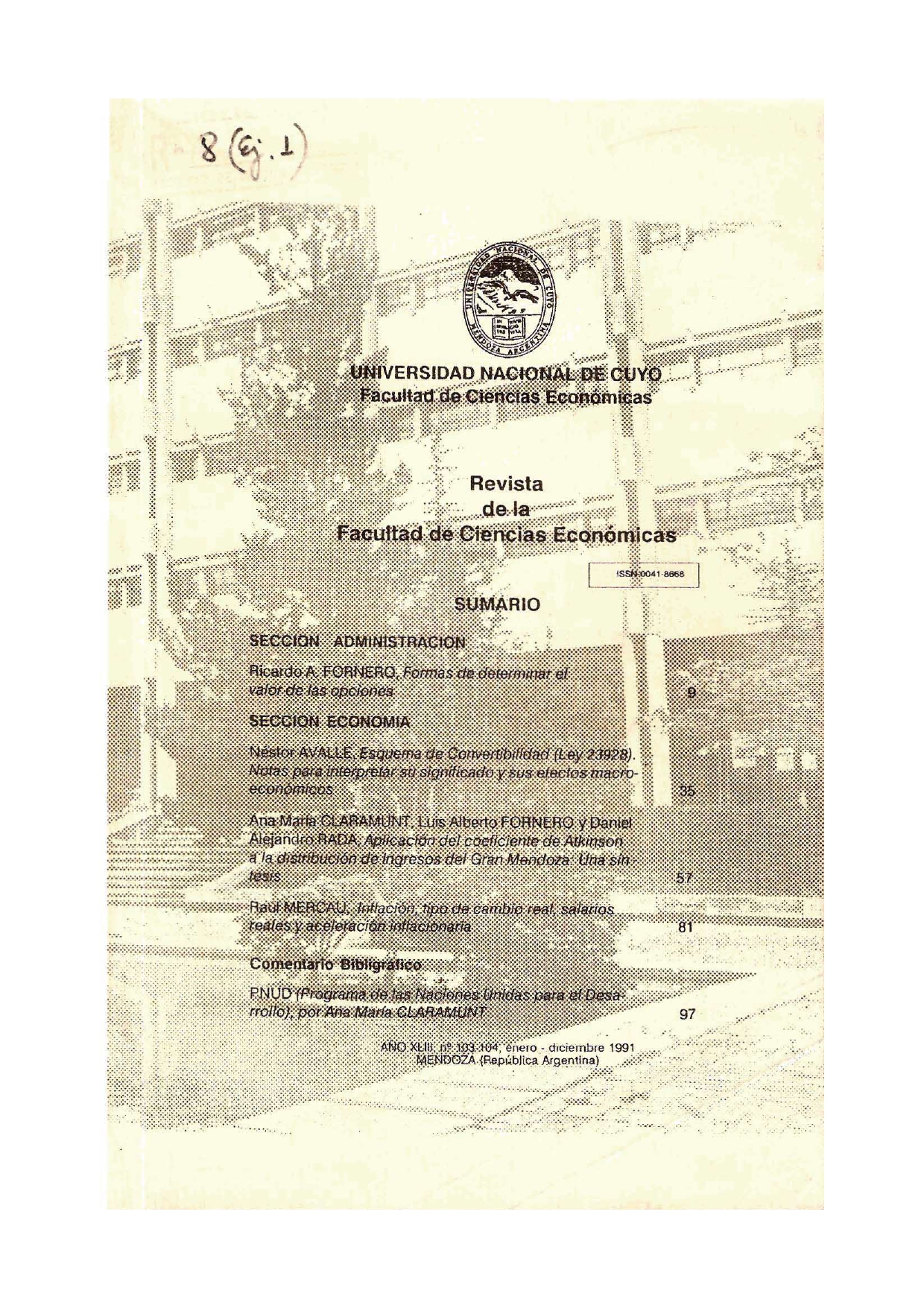 En este número abre la edición un artículo de opciones de instrumentos financieros advirtiendo que no basta con la aplicación de los modelos de valoración. En la sección Economía se presenta un análisis de la ley de convertibilidad, continúa un segundo texto sobre la relación entre la eficiencia y equidad y termina la sección un estudio sobre el impacto en economías abiertas del tipo de cambio real y los salarios. Cierra el número un análisis del primer informe anual de PNUD sobre desarrollo humano.