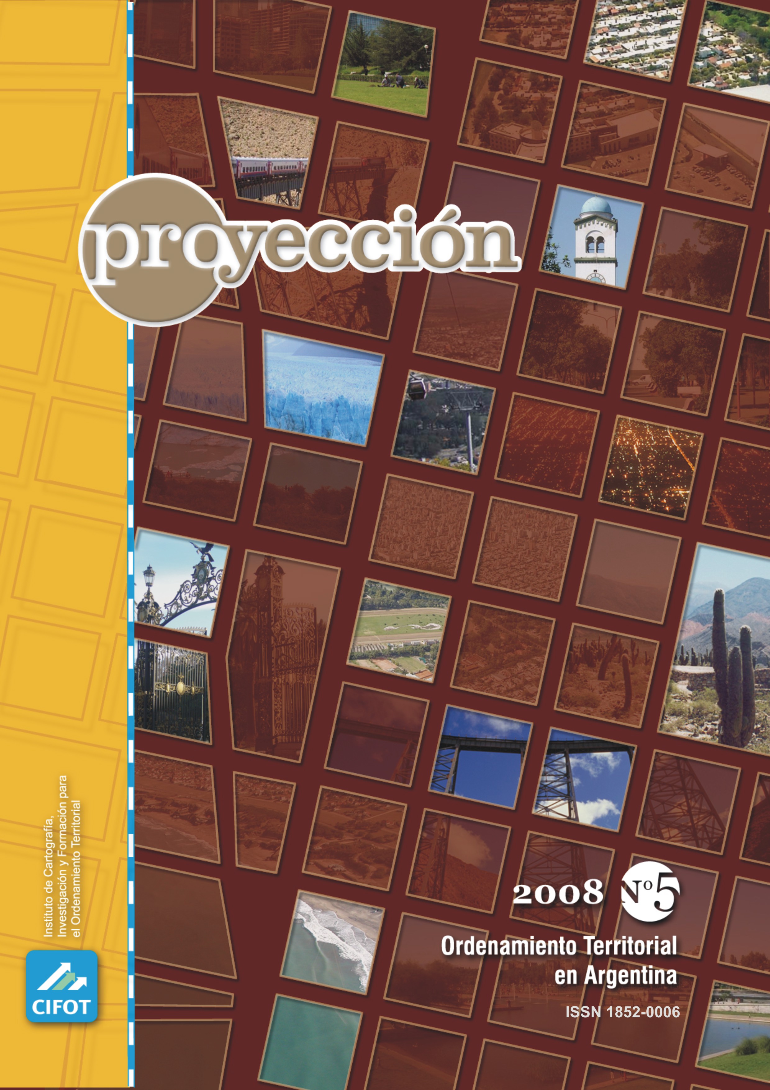 La Revista Proyección en su quinta edición quiere presentar la situación de Argentina en temas relacionados con Ordenamiento Territorial. Los artículos referentes a Salta, Tucumán, Córdoba, Santa Fe, Buenos Aires, Mendoza, Chubut y Santa Cruz analizan diferentes problemáticas sociales, económicas, políticas – institucionales y las que surgen de la relación Sociedad – Naturaleza, que se presentan en el territorio. . El Ordenamiento Territorial se constituye en una opción de planificación que puede llegar a minimizar efectos negativos, siempre y cuando las políticas sean integrales y produzcan innovaciones en la manera de gestionar el territorio.