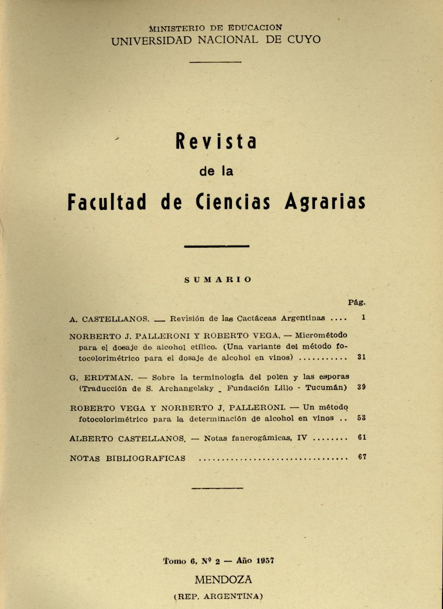 Dado que la investigación científica es una función ineludible de toda Universidad y que la publicación de sus resultados es la manera de validarlos y difundirlos, la Facultad de Ciencias Agrarias UNCuyo edita su Revista para cumplir tales objetivos dentro de las áreas de la Agronomía. Los temas de la Revista están esencialmente orientados hacia la información específica, requerida para la repetición y verificación del trabajo por otros investigadores y extensible a docentes, profesionales y autoridades nacionales, provinciales y/o municipales. El presente número contiene diversos artículos acerca de frutales, además de investigaciones científicas relacionadas a la vid.