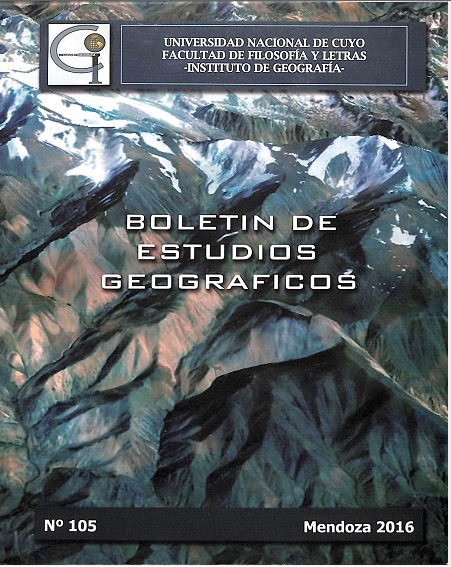 El Boletín de Estudios Geográficos es una publicación periódica originada en 1948, que comprende y difunde trabajos científicos originales, inéditos, relacionados con la amplitud temática de la Ciencia Geográfica, sus objetos y métodos específicos. Se publican también reseñas bibliográficas, tesis de posgrados, reflexiones críticas, entrevistas a referentes de la disciplina, comentarios de eventos científicos.