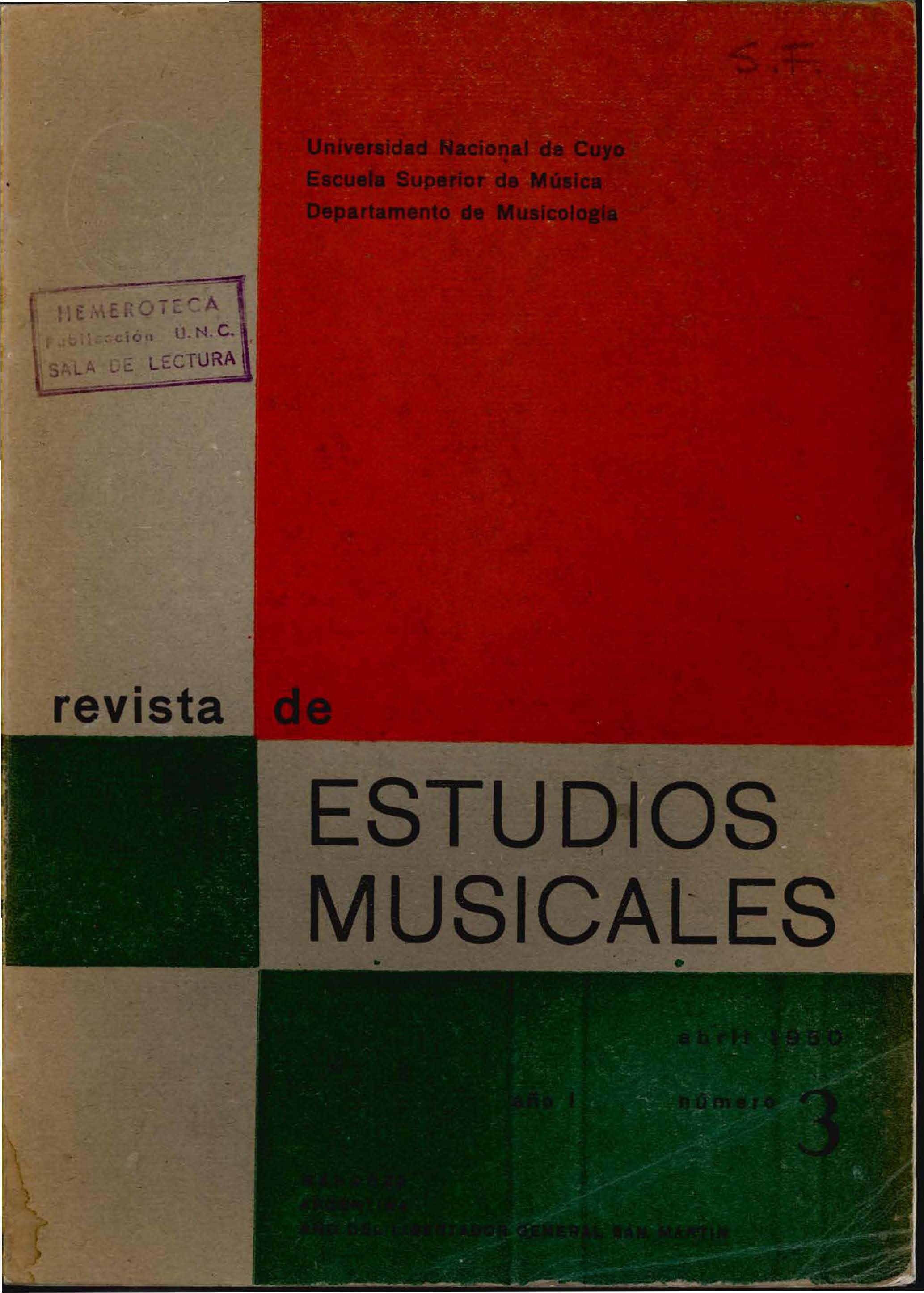 Institución Editora: Universidad Nacional de Cuyo. Escuela Superior de Música. Departamento de Musicología