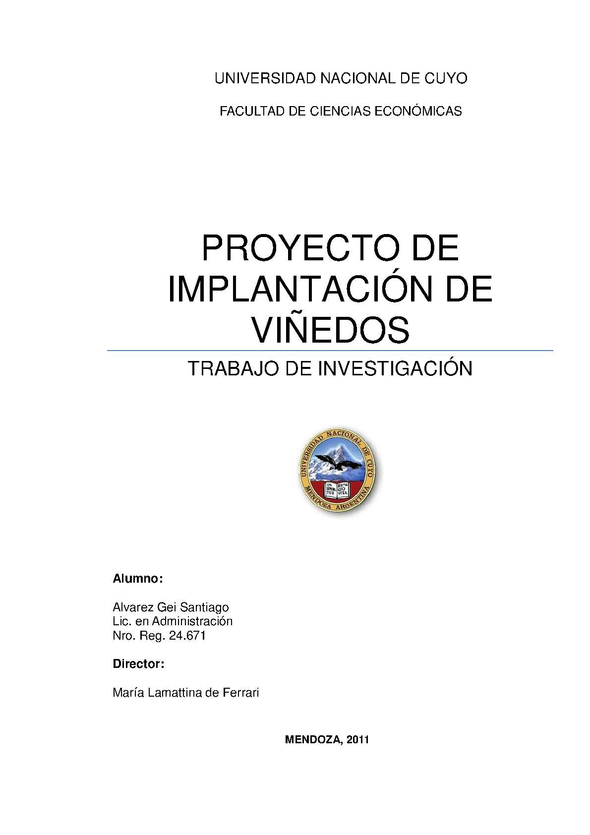 MENDOZA (ARGENTINA) - PROYECTO DE DESARROLLO - VITICULTURA - INVERSIONES AGRÍCOLAS - VINOS - ESTUDIOS DE MERCADO - FINANCIACIÓN - DATOS ESTADÍSTICOS